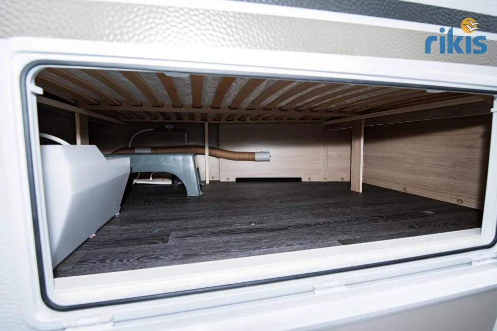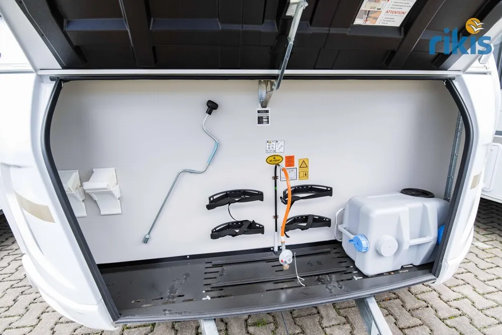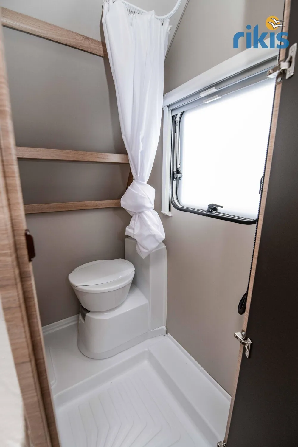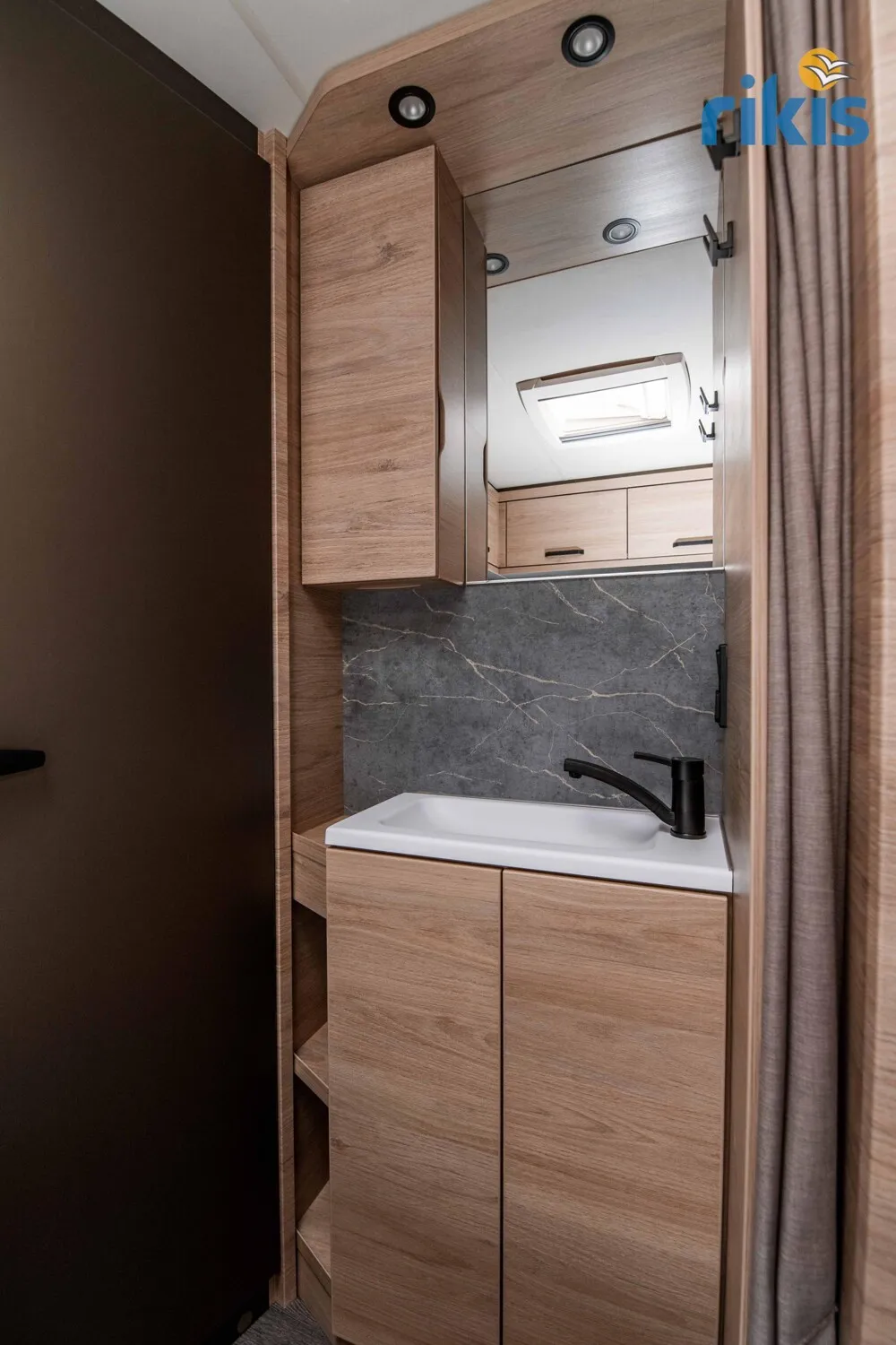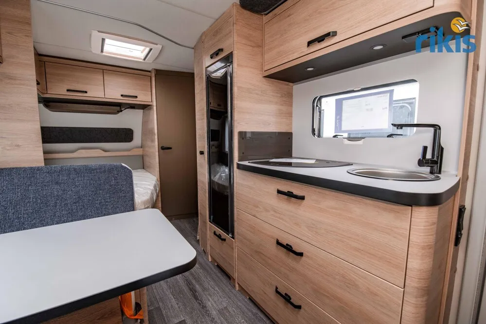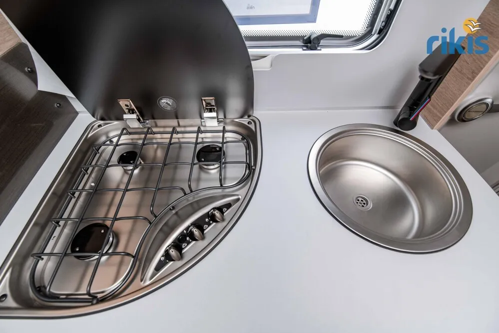 - Smart-Paket (Frischwassertank 45 Liter, Festeinbau, Stabilisator-Sicherheits-Kupplung, Umluftanlage 12 V, Kombi-Rollos an den Fenstern, inkl. Verdunklung und Insektenschutz)