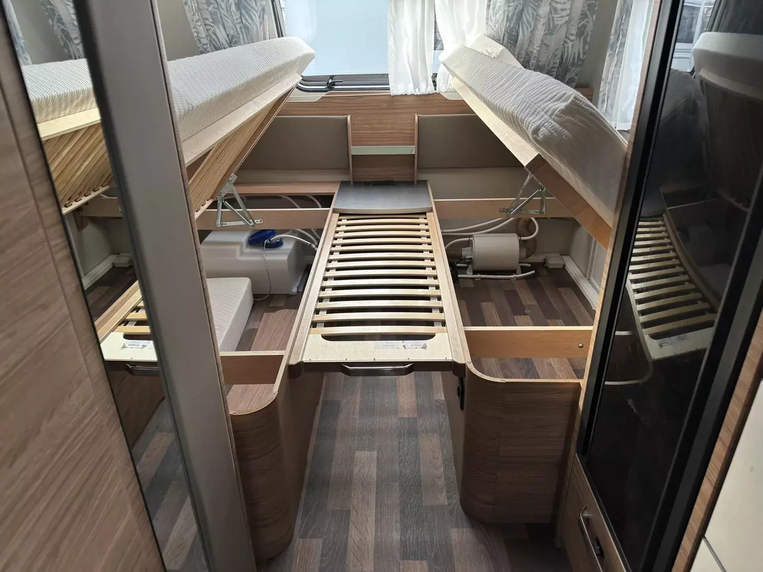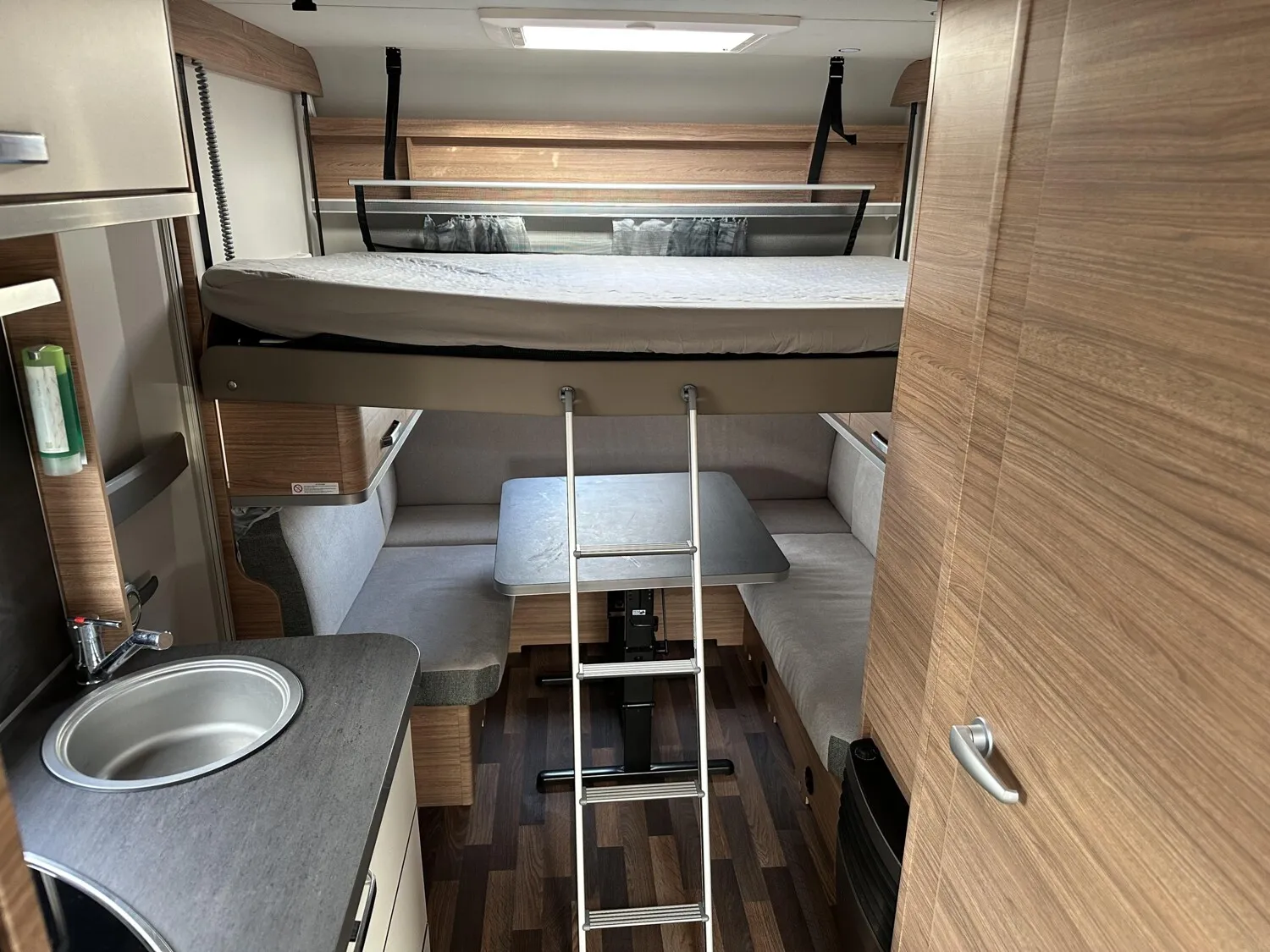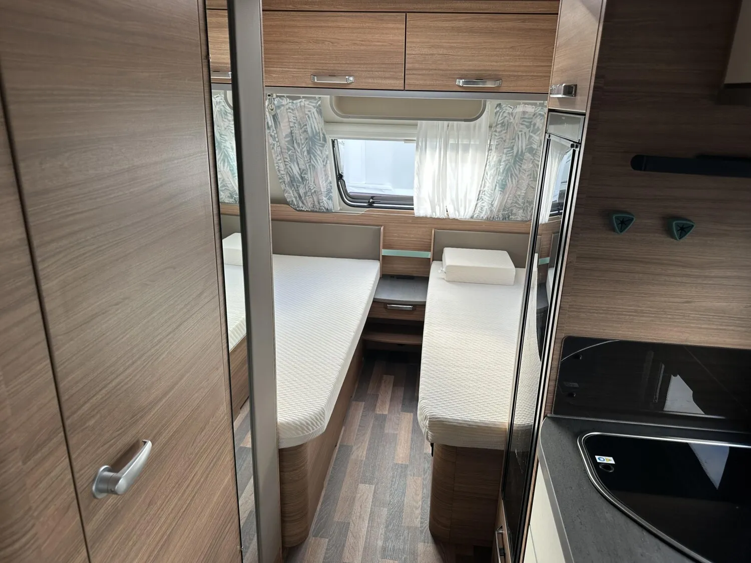 - Smart-Paket (Seifen- und Spülmittelspender, Wasserfiltersystem "bluuwater", Frischwassertank 45 Liter, Festeinbau, Schwerlastkurbelstützen, Stabilisator-Sicherheits-Kupplung, Umluftanlage 12 V, Kombi-Rollos an den Fenstern, inkl. Verdunklung und Insektenschutz)