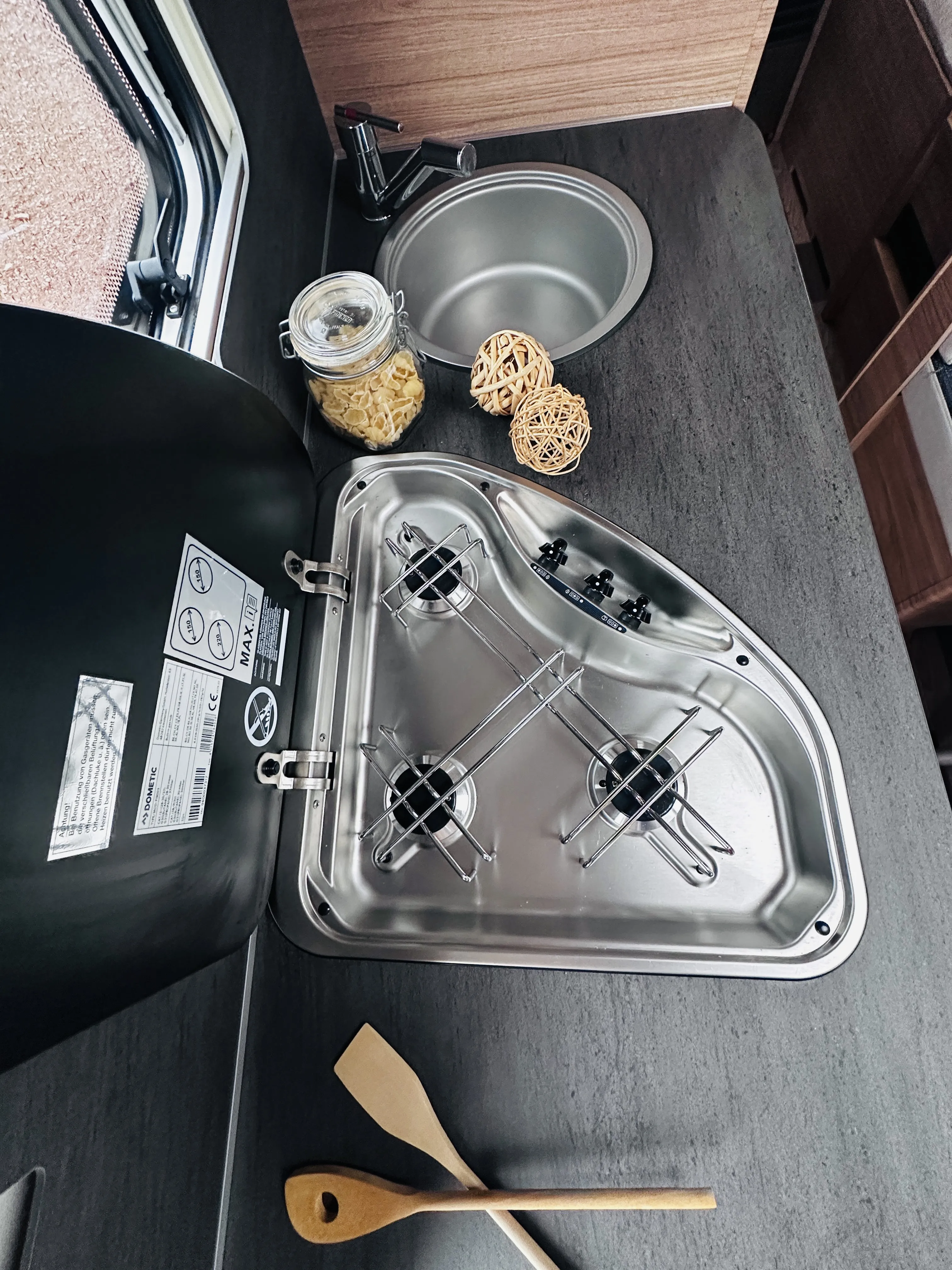 Insektenschutztür, TRUMA Therme mit Anschluss für Küche und T-Raum (nur 230 V Betrieb),