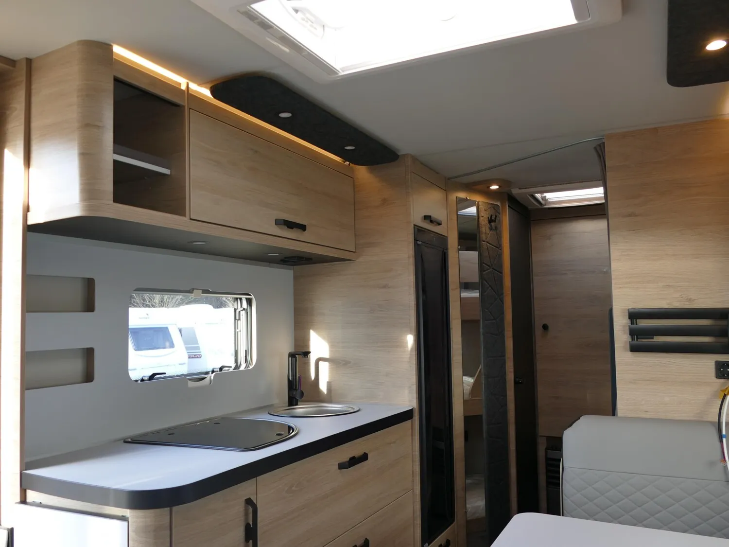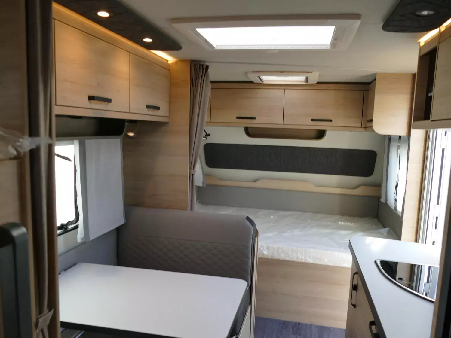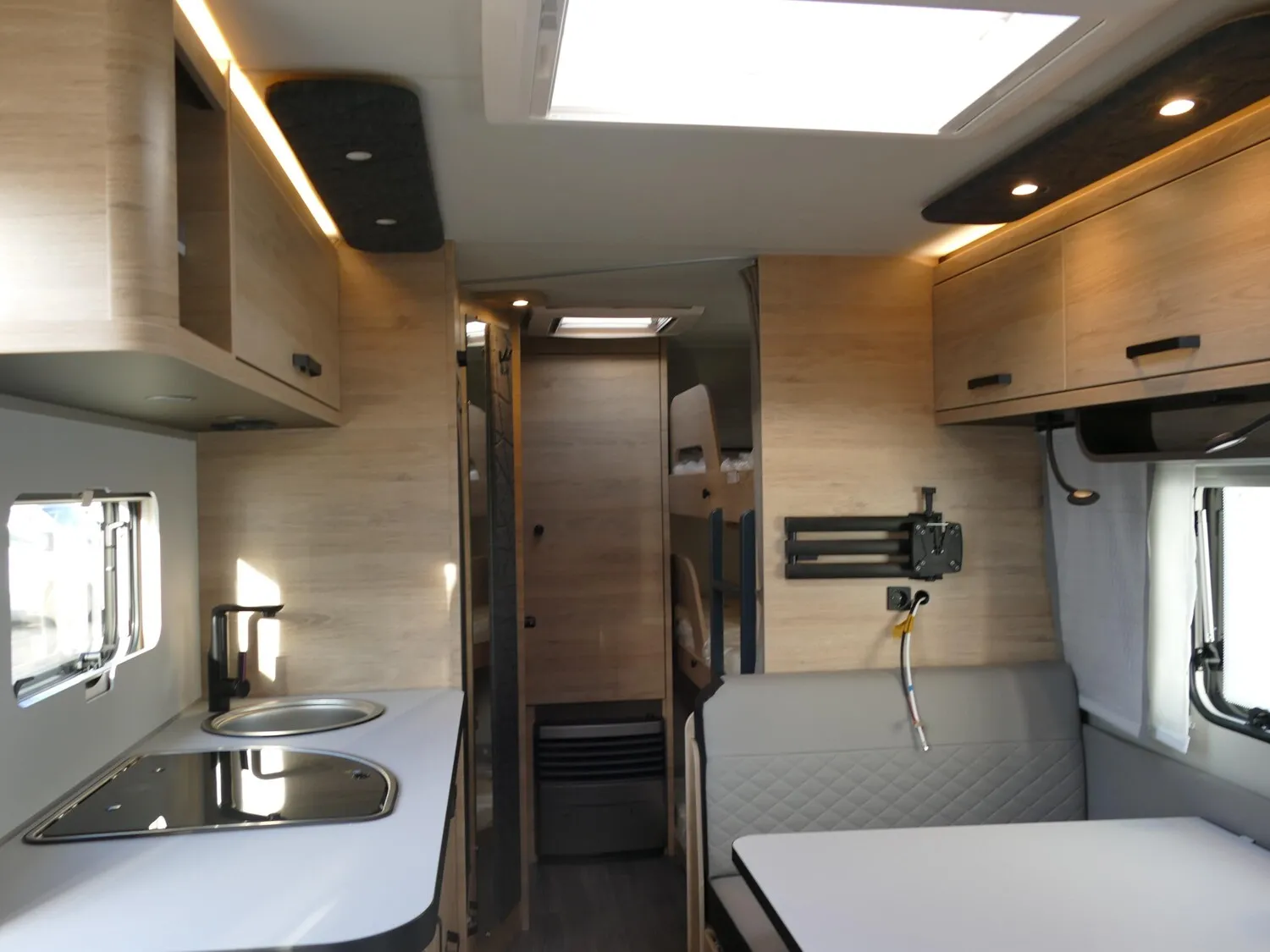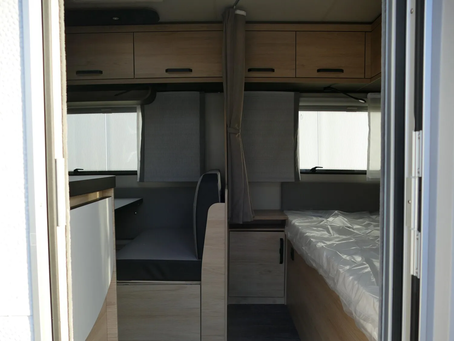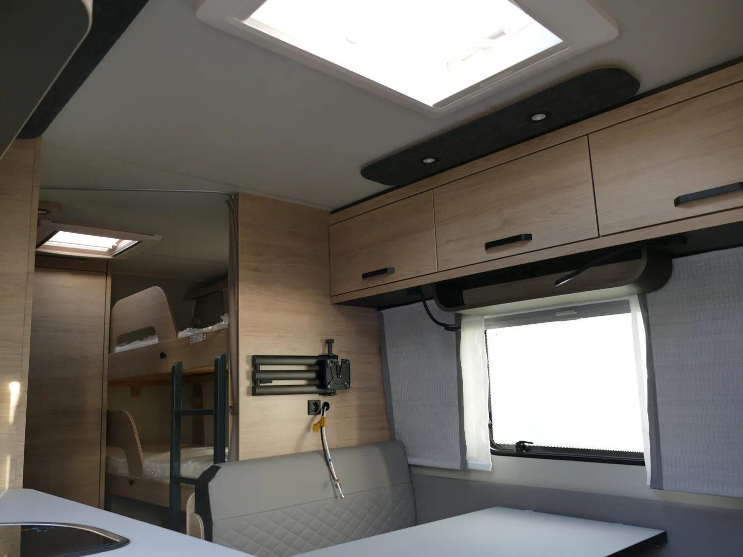 - Smart-Paket (Frischwassertank 45 Liter, Festeinbau, Stabilisator-Sicherheits-Kupplung, Umluftanlage 12 V, Kombi-Rollos an den Fenstern, inkl. Verdunklung und Insektenschutz)