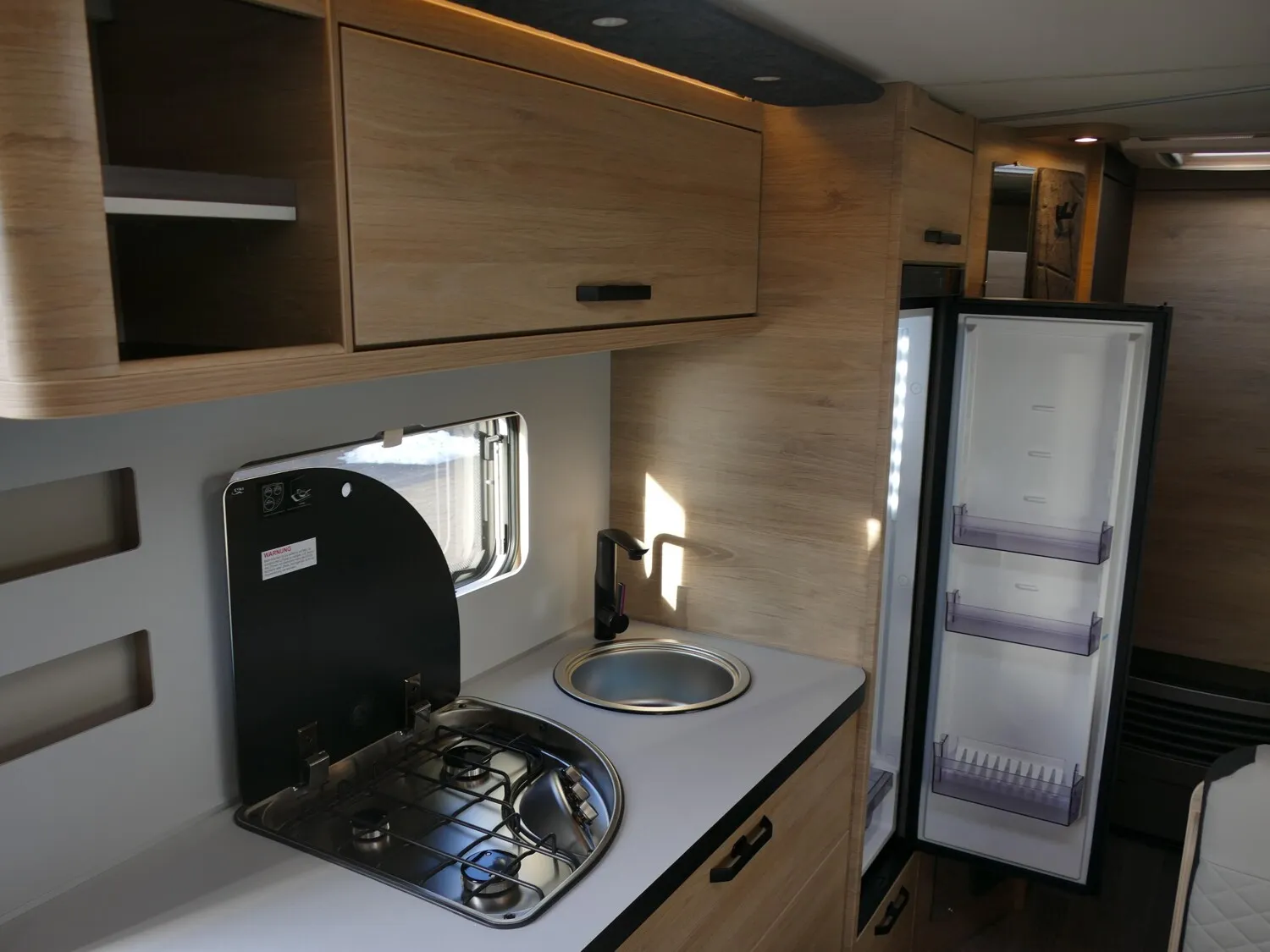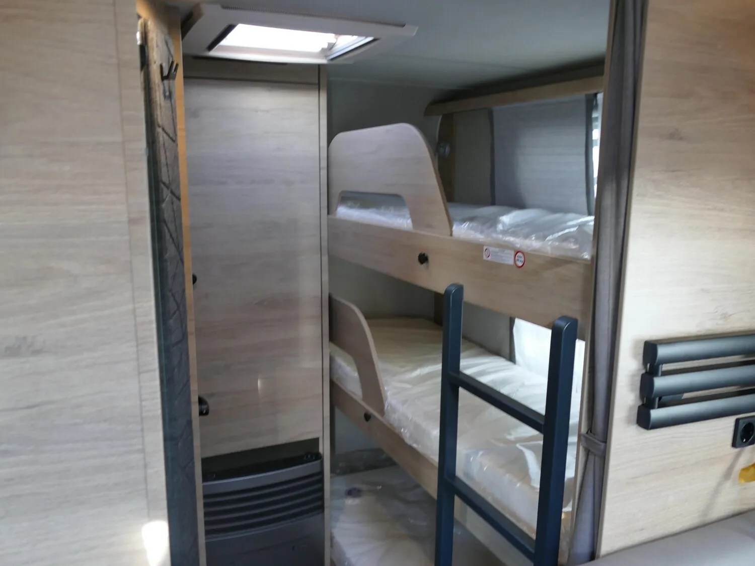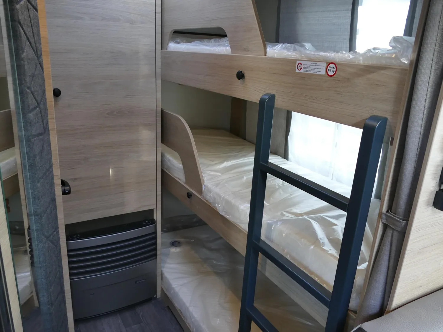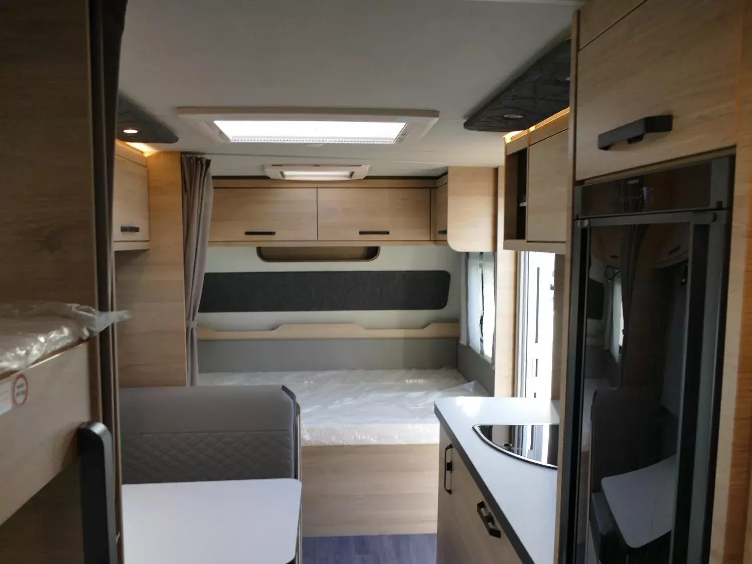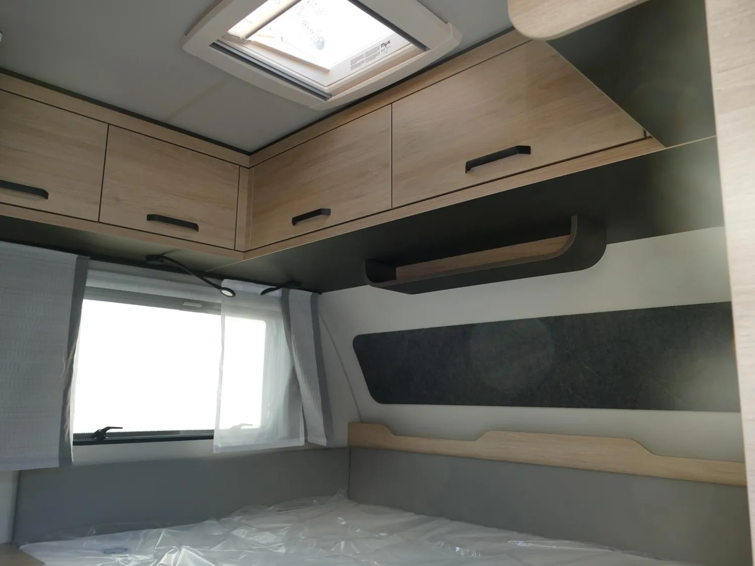 - Smart-Paket (Frischwassertank 45 Liter, Festeinbau, Stabilisator-Sicherheits-Kupplung, Umluftanlage 12 V, Kombi-Rollos an den Fenstern, inkl. Verdunklung und Insektenschutz)