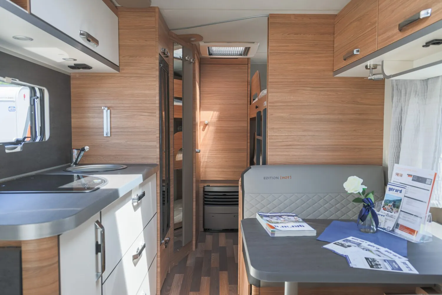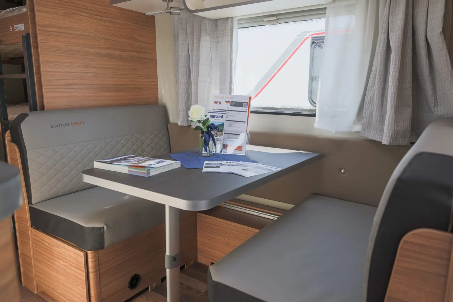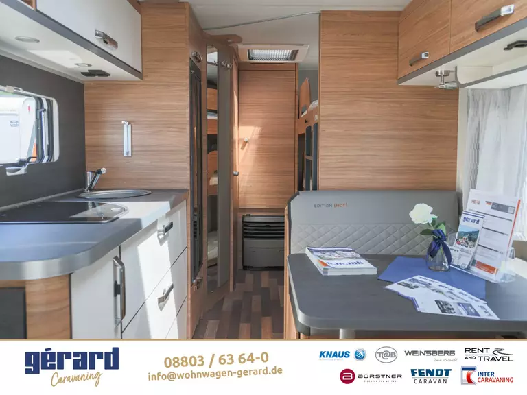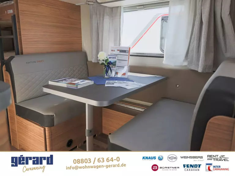 Kombi-Rollos an den Fenstern, inkl. Verdunklung und Insektenschutz ??TÜV und Zulassungspapier ?Schwerlastkurbelstützen ??Abwassertank 25 Liter, rollbar ??Deichselabdeckung ??Sonderbeklebung EDITION [HOT] Sonderpolster: EDITION [HOT]