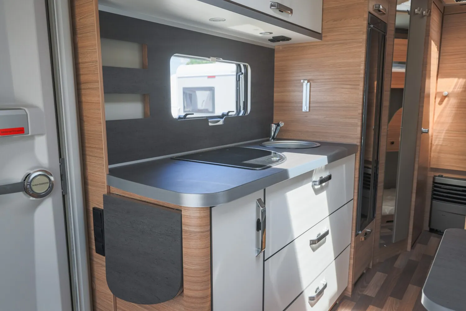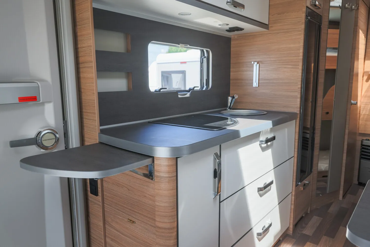 - Aufklappbare Arbeitsplattenverlängerung an der Küche